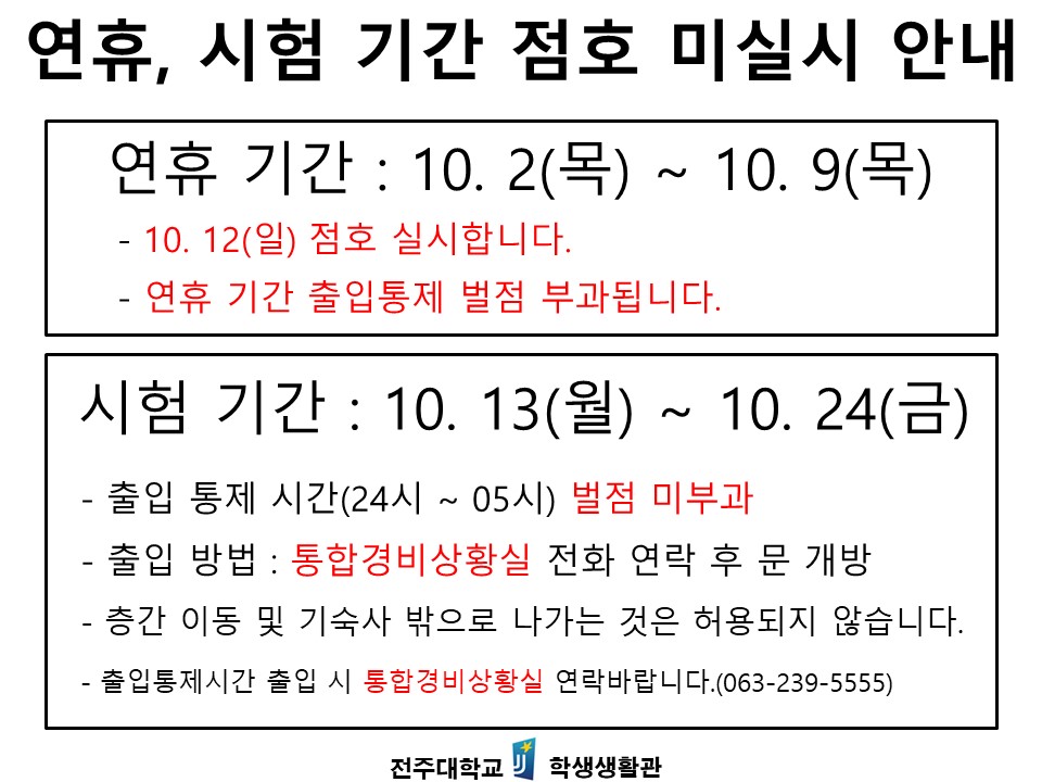 2025-2학기 연휴, 시험 기간 점호 미실시 안내